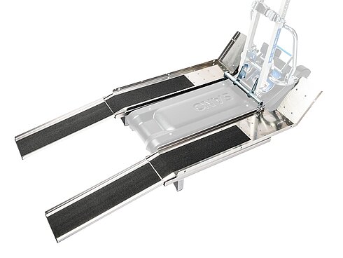 Tento model pásového schodolezu lze využít k přepravě nejen mechanických, ale také elektrických invalidních vozíků. Ke schodolezu stačí v případě potřeby přesunu elektrického vozíku jen připojit dvě rampy, jejichž součástí jsou i nájezdy.